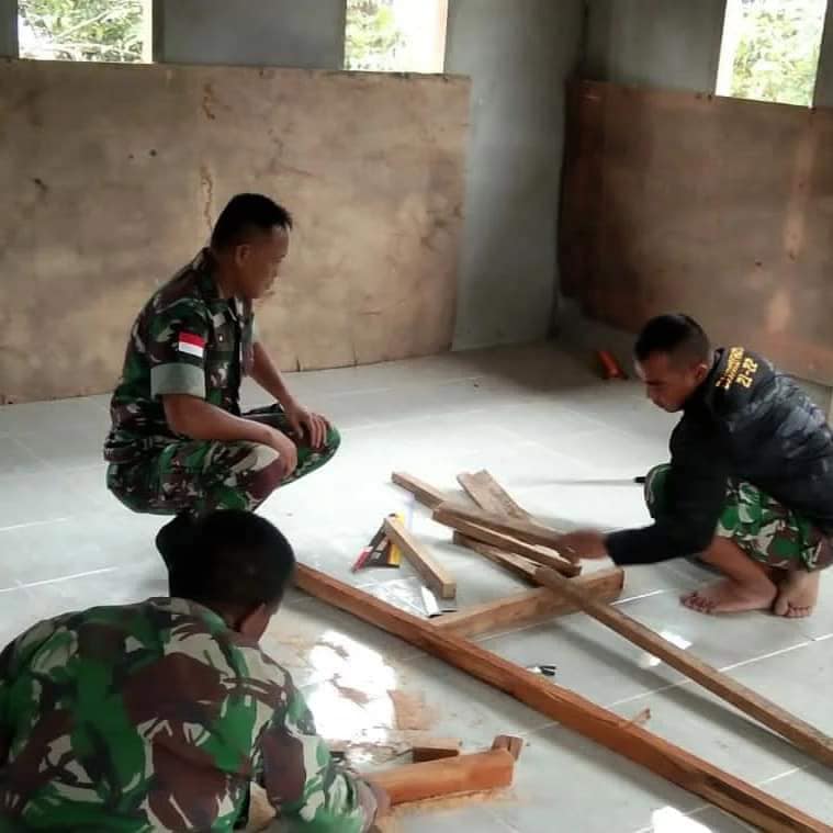 Sambas – Anggota Opster TNI Kodim 1208/Sambas bersama masyarakat melaksanakan kegiatan Perehaban Musholla Nur Hidayatullah Desa Sebubus. Kec. Paloh, Kab. Sambas, Sabtu (06/08).