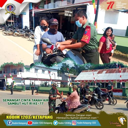 Ketapang – Suasana semarak menyambut HUT Kemerdekaan Republik Indonesia merupakan wujud kecintaan kita terhadap NKRI, Untuk itu Babinsa Koramil 1203-04/Sp. Hulu menggugah semangat cinta tanah air dengan membagikan bendera merah-putih kepada pengguna jalan di depan Makoramil Simpang Hulu, Kab. Ketapang. Kamis, (11/8/2022).