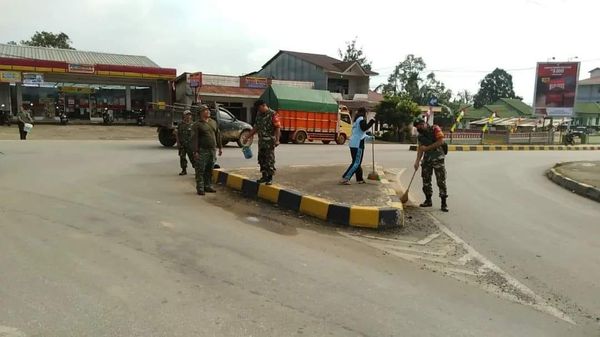 Tampak anggota Koramil 1204- 11/Tayan Hulu bersama warga bersemangat dalam melaksanakan kegiatan kerja bakti tersebut, dengan semangat dan jiwa kekeluargaan.