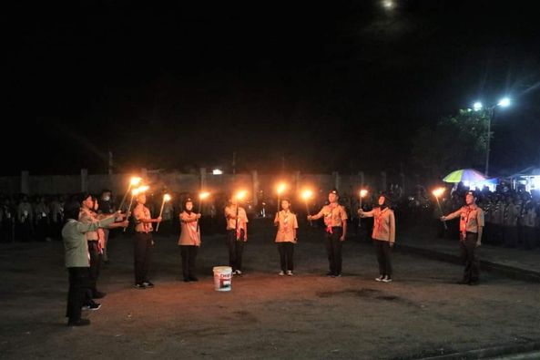 Sintang – Dalam rangka memperingati Hari Ulang Tahun ke-61, Kwartir cabang Gerakan Pramuka Kabupaten Sintang menggelar Upacara Hari Ulang Janji yang dirangkaikan dengan pelepasan pawai obor di Halaman GOR Indoor Apang Semangai Baning Sintang, Sabtu (13/08/2022).
