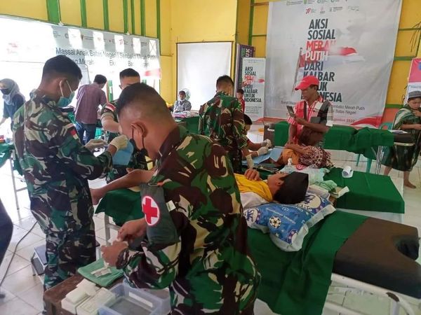 Sambas, KALBAR – Satgas Pamtas Yonif 645/Gty bersama Puskesmas Temajuk dan Rumah Zakat Kalbar (Aksi sosial merah putih) menggelar Bakti Sosial Khitanan Massal kepada 31 Orang Anak batas negeri, bertempat di wilayah Pos Temajuk Kec. Paloh, Kab. Sambas. Sabtu, (13/08/2022).