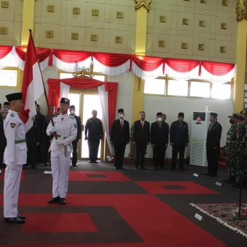 Sambas – Forkopimda Kabupaten Sambas Laksanakan pengukuhan Pasukan Pengibar Bendera Pusaka (Paskibraka) yang bertempat di Aula Utama Kantor Bupati Sambas Jalan Pembangunan, Desa Dalam Kaum, Kec. Sambas Kab. Sambas, Senin (15/8/22)