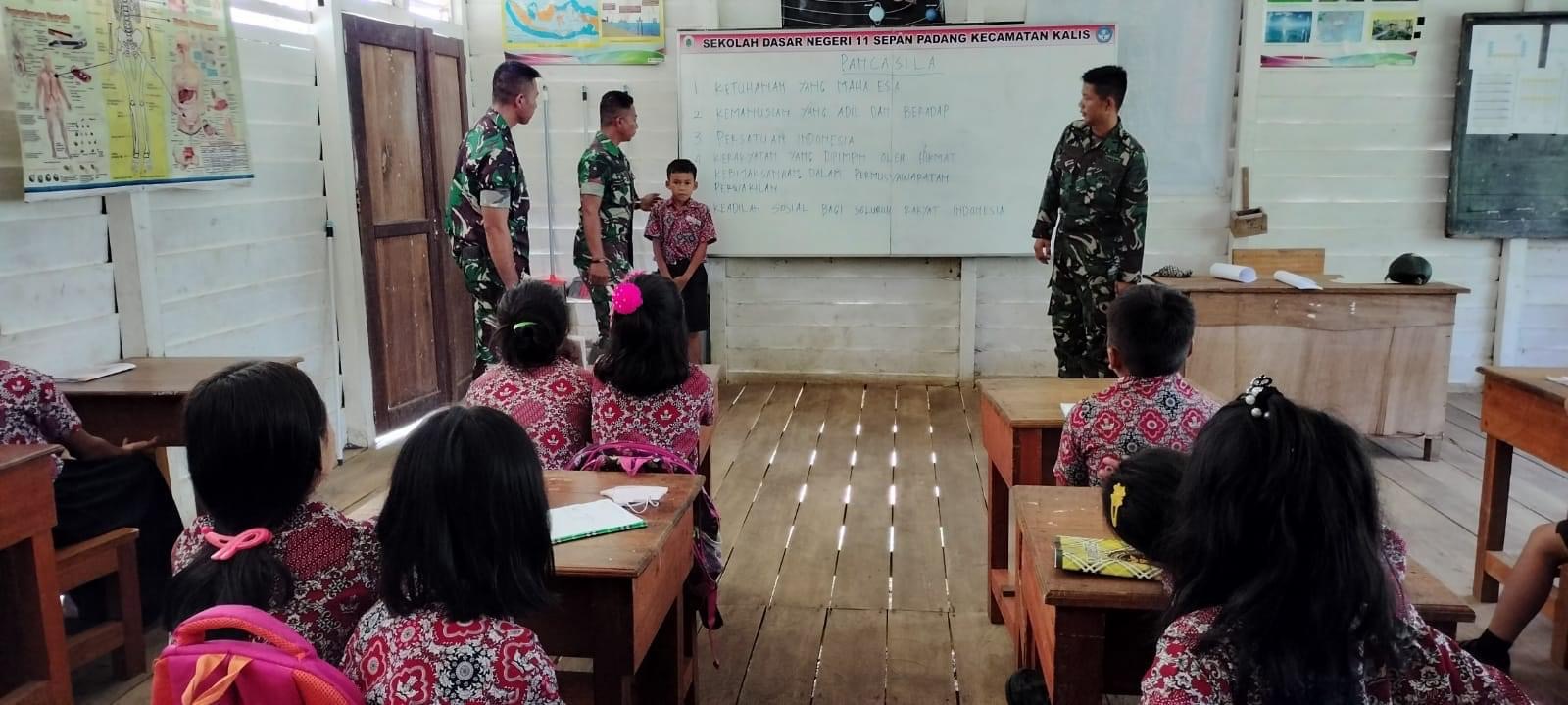 Kapuas Hulu, Kalbar – Pada hari itu tidak seperti biasanya di SDN No 11 Sepan Padang Desa Bahenap, Kecamatan Kalis Kabupaten Kapuas Hulu. Kondisi sekolah di pedalaman Kalbar yang notabene kekurangan tenaga pengajar tiba-tiba saja ada tambahan tenaga pengajar yang lebih unik kali ini tenaga pengajar tersebut dari anggota TNI.