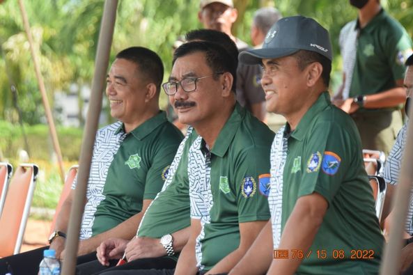 Pontianak, Danrem 121/Abw Brigjen TNI Pribadi Jatmiko Dampingi Pangdam XII/Tpr Mayjen TNI Sulaiman Agusto, S.I.P., M.M dalam Pembukaan Liga Santri PSSI Piala Kasad 2022 Provinsi Kalimantan Barat di Lapangan Sepak bola Perkasa Tanjungpura, Pontianak, Kalimantan Barat, Senin (15/08/2022).