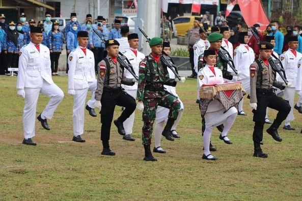 Adapun amanat yang dibacakan oleh Inspektur Upacara Pada intinya diantaranya, Dalam rangka memperingati HUT RI yang ke-77 saya mengajak kita semua untuk banyak bersyukur karena kita diberikan kesehatan terutama di 2 tahun terakhir ini yang mana kita dilanda dengan adanya Virus Covid-19, Terimakasih kepada jajaran instansi dan masyarakat yang ikut dalam merayakan HUT RI yang ke-77 ini khususnya yang berada di wilayah perbatasan, Adapun tema dalam rangka merayakan HUT RI yang ke-77 ini yaitu “Pulih lebih Cepat Bangkit lebih Kuat”, Dalam 2 tahun terakhir perekonomian kita di Indonesia sangat berat terutama di daerah perbatasan namun karena kita kuat dan tangguh kita masih berdiri tegak dan dapat hidup untuk itu kita harus lebih banyak lagi untuk bersyukur, Saya Mangajak seluruh elemen masyarakat untuk Bersama-sama menjawab tantangan global yg ada didunia ini dengan cara meningkatkan perekonomian di Indonesia, Terkait dengan Pengelola Perbatasan negara Presiden selalu mengingatkan bawa Daerah Perbatasan merupakan Garda terdepan Bangsa Indonesia. Ungkap Irjen Pol (Purn) Drs. Hamidin