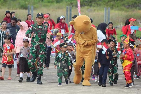 KAPUAS HULU – Dalam rangka memperingati hari ulang tahun kemerdekaan Republik Indonesia ke-77, satgas pamtas RI-Malaysia Yonarmed 19/105 Trk Bogani ikut serta dalam kegiatan karnaval budaya oleh anak-anak TK di Kecamatan Badau, Kabupaten Kapuas Hulu, Kalimantan Barat. (Selasa, 16 Agustus 2022)