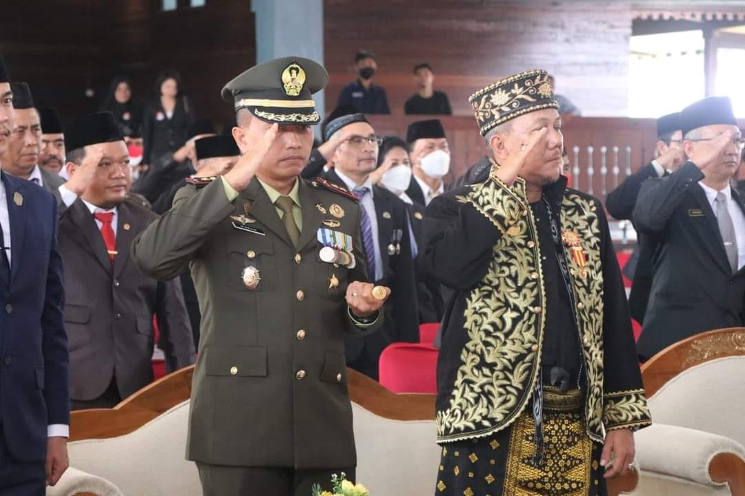 Sintang – Bersama jajaran Forum Komunikasi Pimpinan Daerah (Forkopimda) Kabupaten Sintang, Dandim 1205/Sintang, Letkol Inf Kukuh Suharwiyono, turut mengikuti upacara detik-detik Proklamasi peringatan HUT RI ke 77 secara virtual di Pendopo Rumah Jabatan Bupati Sintang, Jalan Pembangunan, Kelurahan Tanjung Puri, kabupaten Sintang, Rabu (17/8/2022).