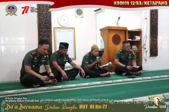 Dandim 1203/Ktp Letkol Inf Alim Mustofa yang mengatakan,” Selain wujud rasa syukur, Do’a Bersama ini juga merupakan wujud kecintaan Prajurit Kodim 1203/Ktp terhadap NKRI, semangat patriotisme sudah terpatri dalam hati setiap Prajurit akan selalu mengenang jasa-jasa ,perjuangan, pengorbanan para pahlawan dalam merebut kemerdekaan Indonesia.