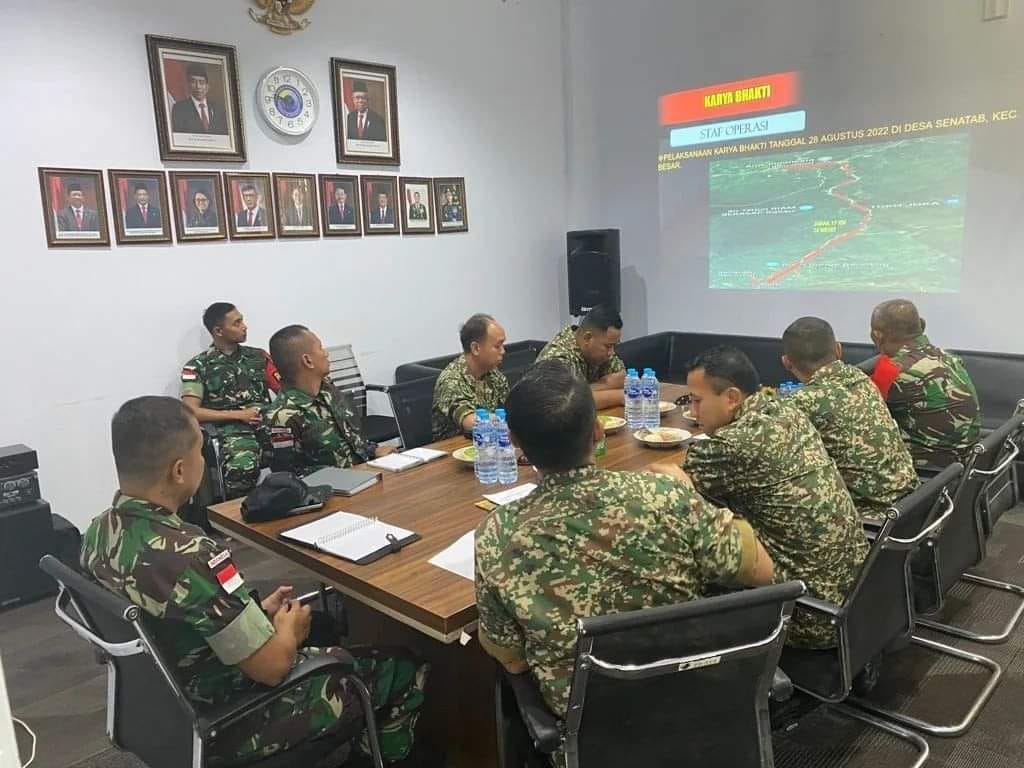 Sambas, Kalbar – Dansatgas Pamtas Yonif 645/GTY Letkol Inf Hudallah, S.H. hadiri langsung pada pelaksanaan Paparan Mengenai Persiapan Pelaksanaan Patroli Koordinasi Satgas Pamtas RI-MLY Yonif 645/GTY (TNI AD) dan Tentera Diraja Malaysia (TDM) SERI I/ 2022 yang akan dilakasanakan pada tanggal 21 – 27 Agustus 2022, diwakili oleh Satgaster Kodim 1208/Sambas dari Indonesia & UNIT REJ 4 KAD diwilayah Aruk, bertempat di Ruang VIP PLBN Aruk, Dsn. Aruk Ds. Sebunga Kec. Sajingan Besar Kab. Sambas. Jumat, (19/08/2022)