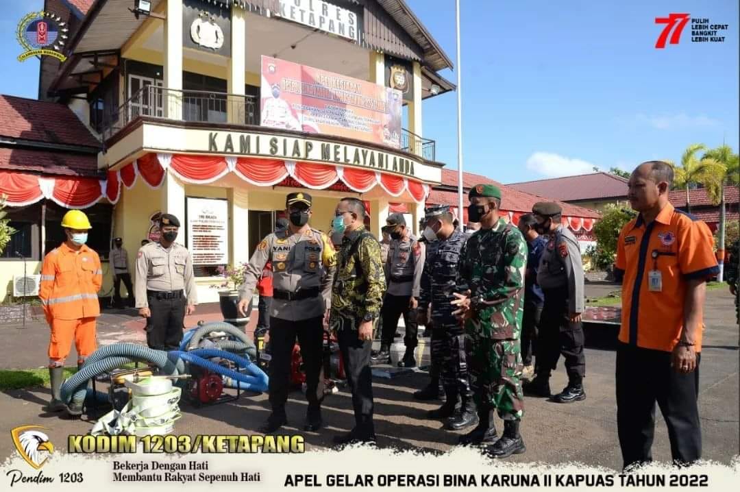 Ketapang – Dalam rangka upaya pencegahan dan penanggulangan karhutla di wilayah kerjanya, Kodim 1203/Ktp mengikuti Apel Gelar Pasukan Ops Bina Karuna II Kapuas Tahun 2022, di Mapolres Ketapang. Jum’at (19/8/2022).