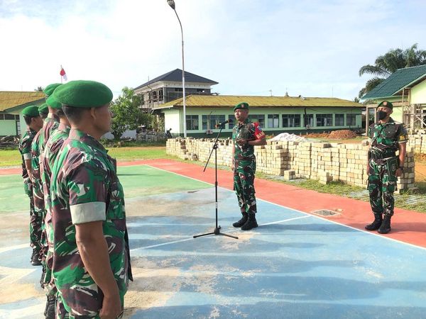Komandan Kodim 1201/Mempawah Letkol Inf Daru Cahyo Alam, S.Sos., memimpin apel pagi personel Kodim 1201/Mempawah di halaman Makodim Senin (22/8/2022).