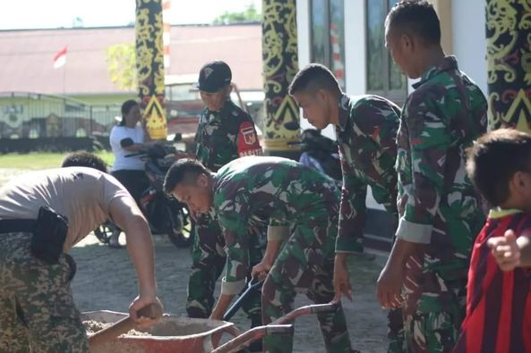 “Kegiatan karya bhakti yang kita laksanakan adalah sebagai wujud kepedulian kita kepada masyarakat di wilayah perbatasan. Salah satunya adalah melaksnaakan karya bhakti terhadap tempat ibadah yang kita laksanakan bersama masyarakat serta jemaat di gereja tersebut.” Ujar Dansatgas.