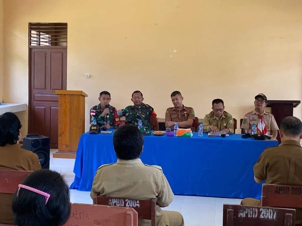 Bengkayang, KALBAR – Wakil Komandan Satgas Pamtas RI-MLY Yonif 645/Gty hadiri Rapat Kordinasi Keberangkatan Kontingen Kwaran Jagoi Babang Dan Kontingen Saka Wira Kartika Jagoi Babang, bertempat Di Ruang Aula SMAN 1 Jagoi Babang Jln. Paralel Negara Dsn. Sei Take Desa Jagoi Kec. Jagoi Babang Kab. Bengkayang. Selasa, 23 Agustus 2022.