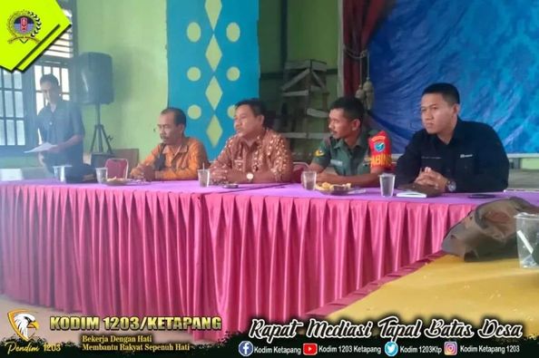 Kayong Utara- Musyawarah untuk mencari kata mufakat merupakan langkah awal menindak lanjuti suatu permasalahan di wilayah, seperti yang dilaksanakan Sertu Supriyadi Babinsa Nipah Kuning, Koramil 1203-11/Sph yang menghadiri rapat mediasi terkait permasalahan lahan perbatasan Desa.
