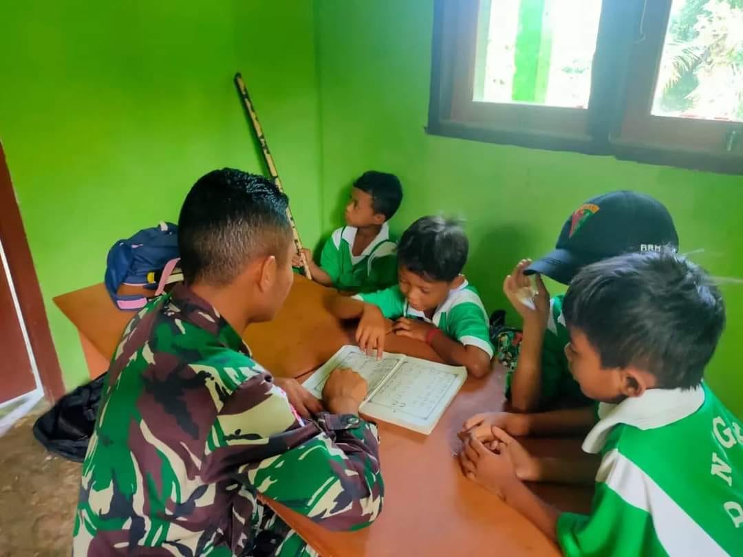 “Selain menjadi tenaga pendidik yang mengajarkan materi-materi pelajaran umum, anggota satgas juga memberikan pembekalan dasar di bidang agama bagi anak-anak di sekolah yaitu membaca Alquran dan Iqra.” Ujar Edi.