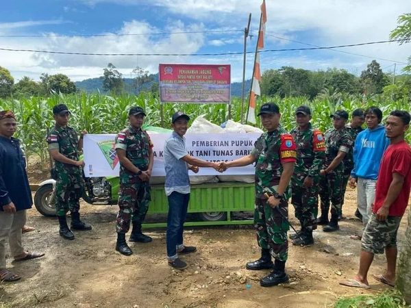 Dikatakan Dansatgas, untuk pupuk yang dibagikan sebanyak 1050 Kg/1 Ton 50 Kg dan diserahkan langsung kepada Kelompok Tani Tunas Baru. ujarnya