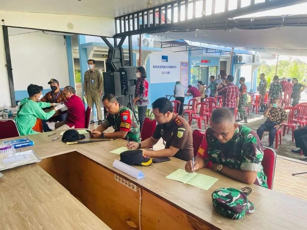 Entikong, Kalbar − Satgas Pamtas RI-MLY Yonif 645/GTY dipimpin langsung Dansatgas Letkol Inf Hudallah, S.H. beserta 9 (Sembilan) orang personil Pos Kotis Gabma Entikong dan 2 (dua) orang anggota Tentera Diraja Malaysia (TDM) ikuti kegiatan bakti sosial donor darah dalam rangka Hari Ulang Tahun Radio Republik Indonesia (RRI) ke-77, bertempat di Kantor RRI Entikong Dusun Semeng, Desa Semanget, Kec Entikong Kab. Sanggau. Kamis, (1/09/2022)