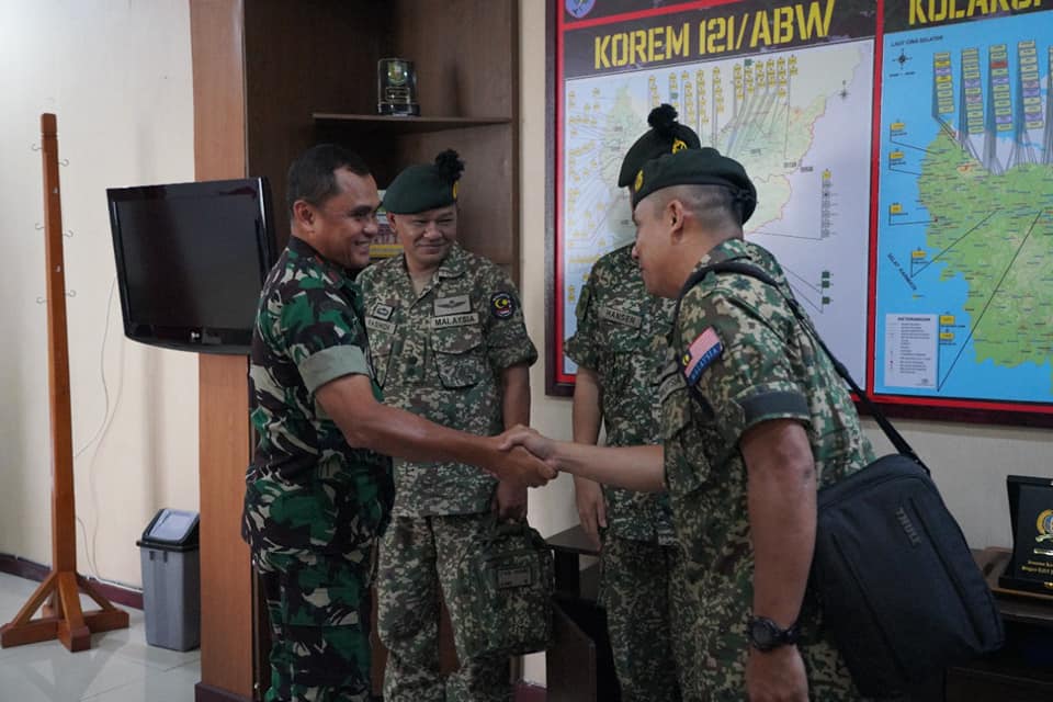 Dalam kesempatan ini Dankolakopsrem 121/Abw Brigjen TNI Pribadi Jatmiko mengucapklan selamat datang kepada Ketua Staf 3 Briged Lt Kol Ameruddin bin Hj Razali beserta rombongan dari Delegasi Malaysia, “ Selamat datang kepada Ketua Staf 3 Briged Lt Kol Ameruddin bin Hj Razali di Kolakopsrem 121/Abw”, Ucap Danrem 121/Abw