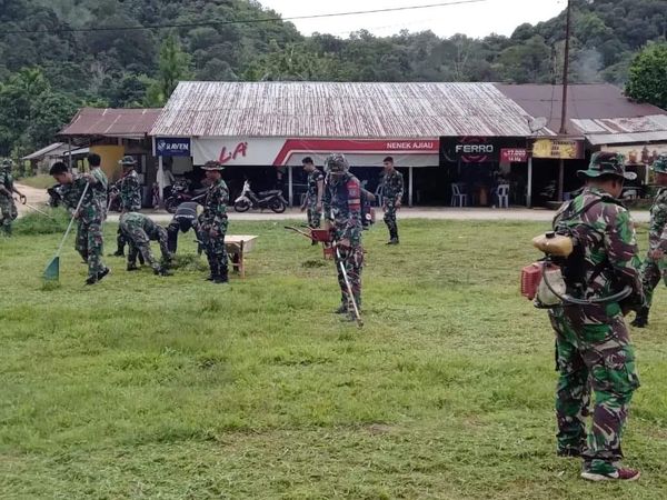 Masyarakat terlihat sangat antusias sekali karena dibantu oleh aparat TNI khususnya Pos Kout dan Pos Koki SSK 2 Satgas Pamtas RI-Malaysia Yonif 645/Gty mereka saling bahu membahu membersihkan lapangan dan parit sekeliling lapangan agar tetap terawat dan dapat di pakai setiap saat apabila di gunakan dalam kegiatan apapun.