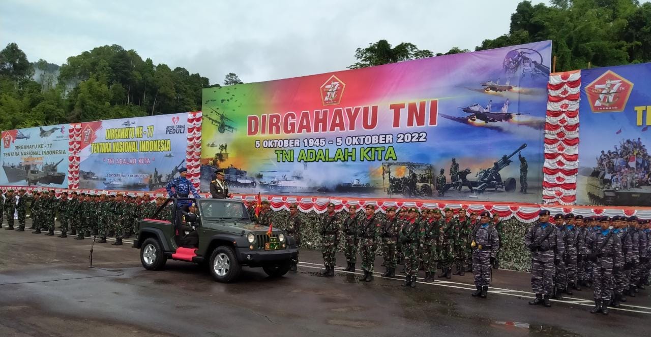 Kodam XII/Tpr bersama jajaran memperingati HUT TNI ke- 77 pada tahun 2022 kali ini dilaksanakan terpusat di perbatasan RI-Malaysia (Entikong).