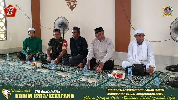 Ketapang – Danramil 1203-01/Nanga Tayap yang diwakili Sertu M. Ali Pohan Babinsa Koramil 1203-01/Nanga Tayap menghadiri Peringatan Maulid Nabi Besar Muhammad SAW. Minggu (9/10/2022)