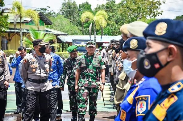 Komandan Kodim 1205/Sintang, Letkol Inf Kukuh Suharwiyono menghadiri langsung Apel Kesiapan Pengamanan Pemilihan Kepala Desa bersama unsur Forkopimda Kabupaten Melawi.