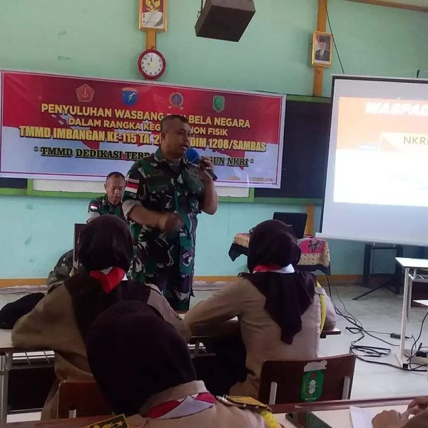Penyuluhan diberikan dalam rangka pelaksanaan kegiatan non fisik TMMD Imbangan ke-115 Kodim 1208/Sambas untuk memberikan pemahaman kepada para pelajar tentang pentingnya wawasan nusantara dan bela negara.