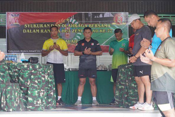 Syukuran dan olahraga bersama ini dalam rangka memperingati HUT ke-77 korps Zeni yang digelar secara sederhana dan hikmad.
