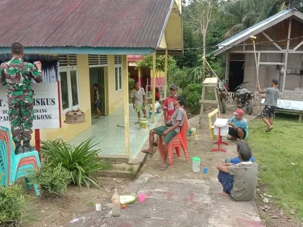 Sanggau, Kalbar – Wujud nyata kemanunggalan TNI dengan Rakyat, Satuan tugas Pengamanan perbatasan RI-MLY Yonif 645/Gardatama Yudha prajurit Pos Pala Pasang Bersama warga masyarakat perbatasan secara Bahu membahu melaksanakan kegiatan Karya Bhakti Pembenahan dan Pengecatan Gereja Katolik Fransiskus, Dusun Pala Pasang, Desa Pala Pasang, Kecamatan Entikong, Kabupaten Sanggau, Provinsi Kalimantan Barat.