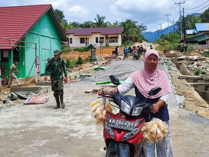 Salah satu warga Ibu Ngatirah saat ditemui berjualan krupuk keliling di daerah lokasi TMMD mengungkapkan rasa terimakasihnya kepada TNI dan pemerintah Daerah atas terselenggaranya TMMD ke 115 di tempatnya.
