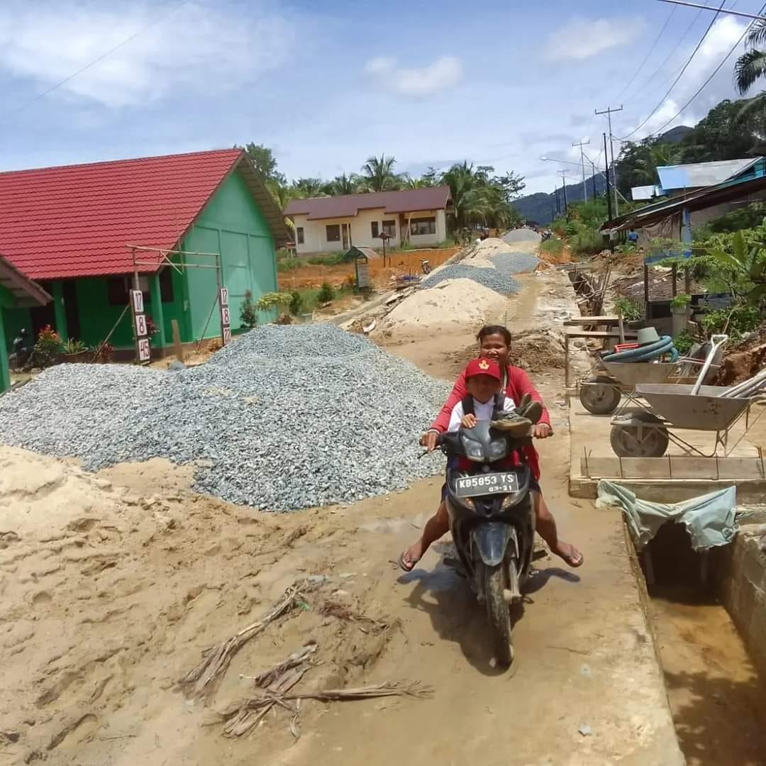 Rasanya ikut senang dan puas saat melihat masyarakat dan anak-anak saat menikmati dan bermain hasil pembangunan jalan,” ujarnya.