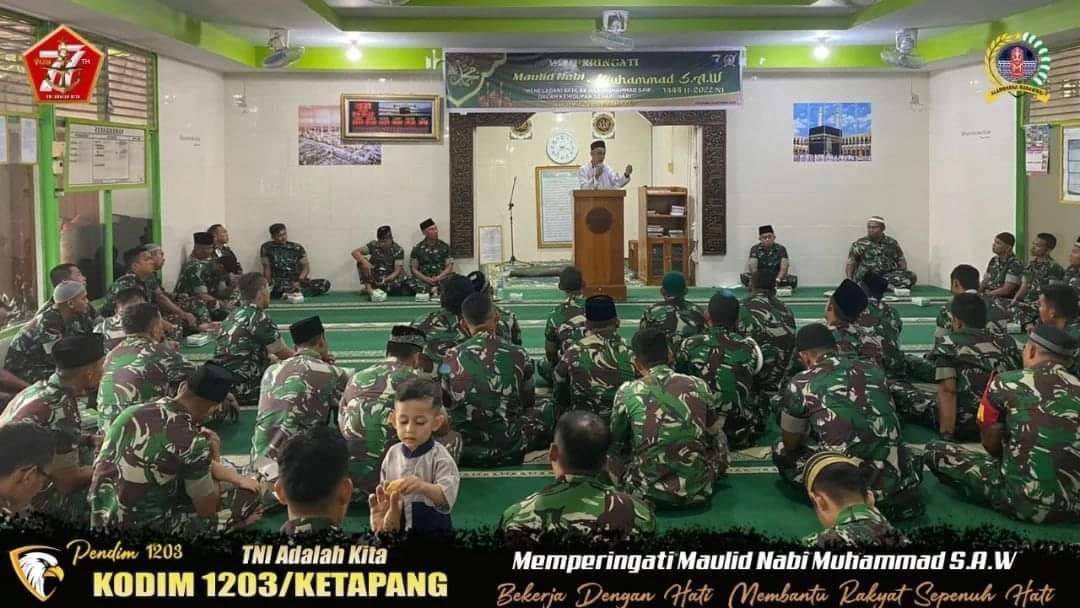 Peringatan Maulid Nabi Muhammad S.A.W., Tahun ini mengangkat tema” Meneladani akhlak Nabi Muhammad SAW dalam kehidupan sehari-hari” yang diikuti oleh Prajurit dan Persit KCK Cabang XLVII Kodim 1203, Koorcab Rem 121 PD XII/Tanjungpura.