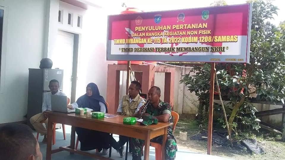 Sambas – Masih dalam rangkaian kegiatan TNI Manunggal Membangun Desa (TMMD) Imbangan ke-115 Kodim 1208/Sambas dengan sasaran Non Fisik yaitu melaksanakan Penyuluhan pertanian yang beralamat di Dusun Penyengat, Desa Lumbang, Kec. Sambas, Kab. Sambas,