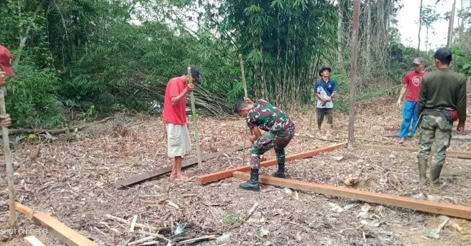 Sanggau, Kalbar – Satuan Tugas Pengamanan Perbatasan RI-Malaysia Yonif 645/Gardatama Yudha wilayah sector barat Kalbar Pos Sei Daun SSK 3 dipimpin Serda Helmi beserta 2 (dua) orang anggota bersama dengan warga masyarakat dusun Malenggang melakukan Karya bhakti pembuatan pondok Tempat Pemakaman Umum (TPU), bertempat di Dusun Malenggang Desa Malenggang Kecamatan Sekayam Kabupaten Sanggau.