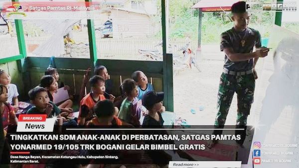 Melihat sebagian besar kawasan perbatasan di lndonesia merupakan kawasan tertinggal dengan sarana dan prasarana sosial, ekonomi, dan pendidikan yang sangat terbatas. Hal tersebutlah yang mendorong Satgas Pamtas Yonarmed 19/105 Trk Bogani Pos Nanga Bayan untuk berinovasi dibidang pendidikan guna pengembangan sumber daya manusia di wilayah perbatasan.