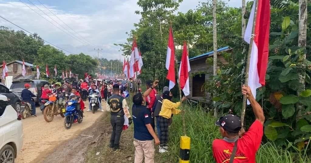 “Bendera merah putih tersebut dikibarkan secara serentak dengan titik pusat Tugu Garuda di perbatasan Jagoi Babang, Penancapan atau pemasangan tiang secara serentak semua pihak termasuk ada sebanyak 3.000 pencinta motor,”