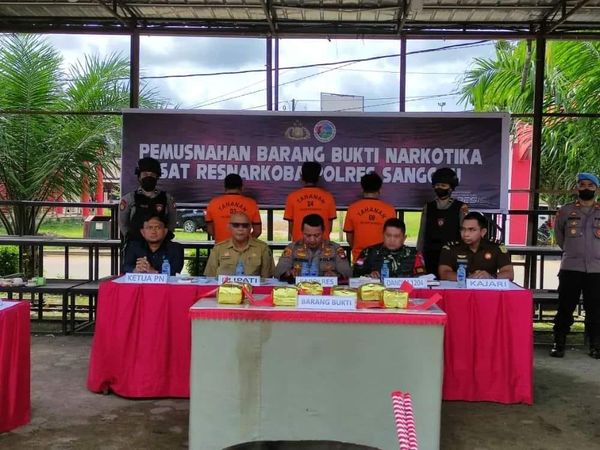 “Pada kesempatan pagi hari ini kita akan memusnahkan barang bukti berupa 7,1 kg, Kemudian untuk 2.136 butir pil warna coklat yang diduga narkotika ekstasi yang kemarin dikemas dalam plastik bening ternyata hasil uji lab dari Balai Besar pengawasan obat dan makanan Pontianak Sesuai dengan surat nomor LP no 22 tanggal 11 Oktober 2022 hasil uji labnya bahwa barang bukti yang diduga ekstasi tersebut hasilnya adalah negatif narkoba dan akan kita serahkan pada saat tahap 2 kepada jaksa penuntut umum.”imbuhnya