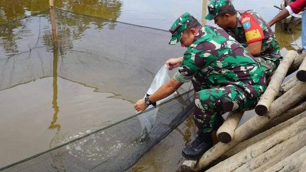 Kapuas Hulu – Kunjungan Tim Survey Standarisasi Kampung Pancasila di pimpin oleh Letkol Arm. Heri Pujiyanto S.Sos didampingi Sertu Gustaf, Dandim 1206/PSB Letkol Inf Sri Widodo bersama Pasiter Kodim 1206/PSB Kapten Arm Supratno, Danramil 06/PSB Utara Kapten Inf Edi Sanjaya melakukan peninjauan kampung Pancasila dan melaksanakan program ketahanan pangan melepaskan bibit ikan patin sebanyak sejumlah 2.000 ekor bertempat di Sekretariat Bersama Kampung Pancasila Desa Hilir Kantor RT/RW 01/05, Kecamatan Putussibau Utara, Kabupaten Kapuas Hulu. Rabu, (02/11/2022).