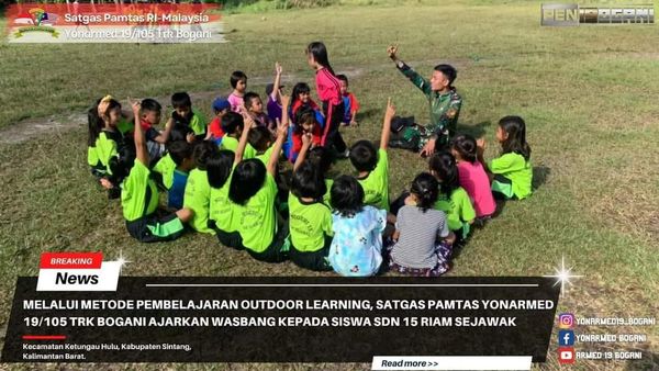 Metode Pembelajaran di luar kelas (outdoor learning) adalah salah satu metode pembelajaran yang aktivitas belajarnya berlangsung di luar kelas/sekolah. Hal tersebut dilakukan oleh personel satgas Pos Riam Sejawak agar kegiatan belajar lebih menarik dan tidak membosankan bagi siswa, sehingga motivasi belajar siswa akan lebih tinggi dan materi yang diajarkan juga akan mudah diserap oleh siswa.