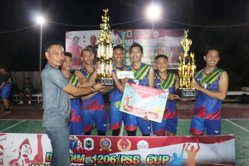 Kapuas Hulu – Turnamen Volley Ball Kodim 1206/PSB Resmi Di tutup oleh Dandim 1206/PSB Letkol Inf Sri Widodo yang di wakili Kasdim 1206/PSB Mayor Inf Supriyono bertempat di lapangan Volley Kodim 1206/PSB Jln. Piere Tendean, Kelurahan Kota, Kecamatan Putussibau Utara, Kabupaten Kapuas Hulu. Kamis malam, (10/11/2022).