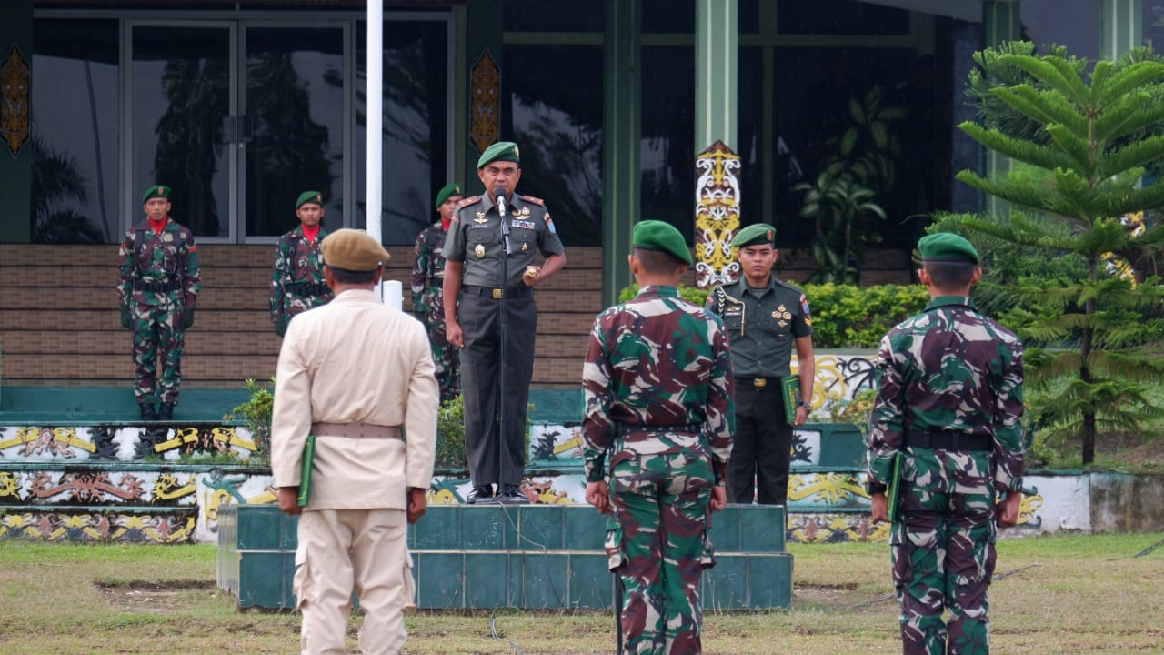 Sintang, Danrem 121/Abw Brigjen TNI Pribadi Jatmiko bertindak sebagai Inspektur Upacara 17 an bulan November Tahun 2022 di Makorem 121/Abw, Jl. Pangeran Kuning No. 1, Tanjungpuri, Sintang, Kalimantan Barat, Kamis (17/11/2022).