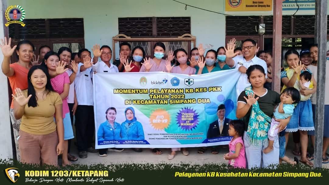 Ketapang- Dalam rangka mendukung program pemerintah mewujudkan NKKBS (Normal keluarga Kecil Bahagia sejatera Bahagia Sejahtera) di wilayah binaan, Babinsa Koramil 1203-04/Sp. Hulu, Serda Abdhul Kholik menghadiri kegiatan Pelayanan KB Kes Kecamatan yang berlangsung di Polindes KB Mekar Raya, Kec. Simpang Dua, Kab. Ketapang. Rabu, (16/11/2022).