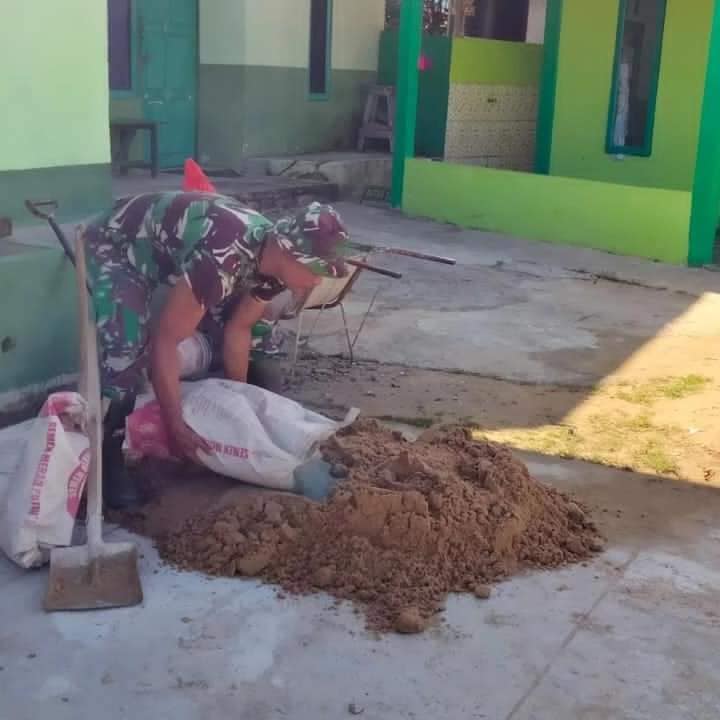 Pembenahan pangkalan dilakukan mulai dari pemasangan Pondasi pagar Makoramil dan juga pemasangan batako, serta membersihkan perkantoran, baik didalam maupun diluar ruangan, Ungkap Sertu Martadinata Sebagai Kepala tukang.