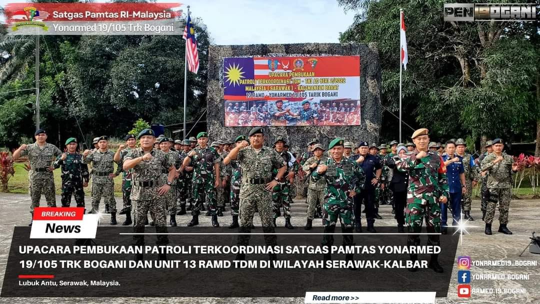 Selanjutnya, dalam amanat Ketua Staf 3 Briged TDM, Letnan Kolonel Ameruddin bin Haji Razali menyampaikan bahwa Kegiatan Patroli Terkoordinasi yang dilaksanakan secara bersama antara Satgas Pamtas TNI-AD, Yonarmed 19/105 Trk Bogani dengan Pasukan Pamtas Malaysia Unit 13 RAMD ini, selain sebagai simbol kebersamaan, juga merupakan bentuk aplikasi eratnya persahabatan antara kedua Angkatan Bersenjata yaitu TNI AD dan TDM.