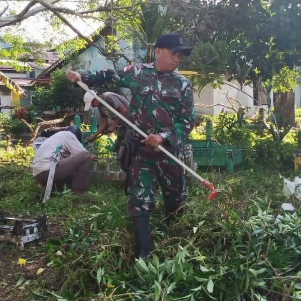 “Dengan kegiatan gotong royong ini bertujuan untuk membiasakan masyarakat setempat dalam kehidupan sehari-hari, mereka dapat mencintai lingkungan dengan cara menjaga kebersihan bersama-sama seperti Tempat Pemakaman Umum,” Tambah Serma Amri.