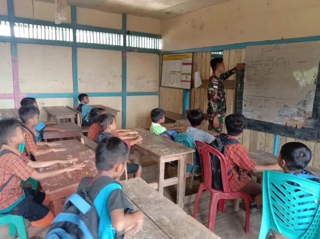 “Kegiatan belajar-mengajar dilakukan oleh personel Satgas Yonarmed 19/105 Trk Bogani Pos Sei Tekam yaitu Serda Rahmad dan 3 personel lainnya dengan materi pelajaran Matematika.” Ujar Dansatgas.