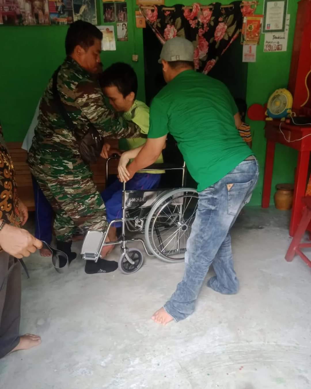PPDI (Persatuan Penyandang Disabilitas Indonesia) Bengkayang bapak Rudi Sutanto berikan bantuan kursi roda kepada warga binaan nya yang mengalami lumpuh dan buta di desa Rantau,Kec Monterado Kab.Bengkayang Senin (05/12/2022).