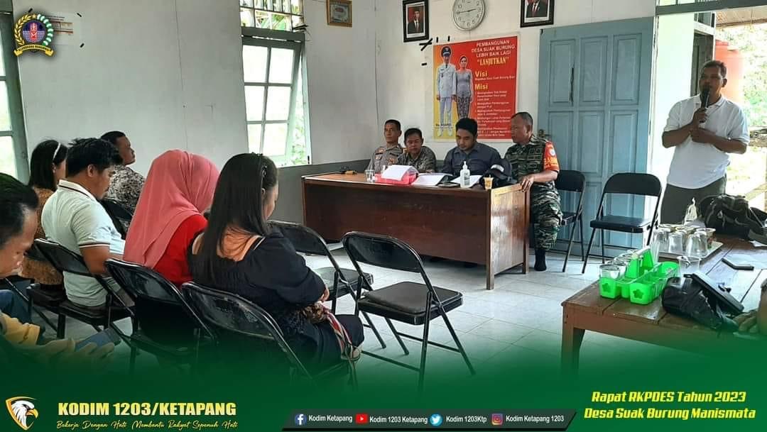 Ketapang – Sertu Masdianto, Babinsa Koramil 1203-06/Manismata, menghadiri kegiatan rapat Rencana Kerja Pembangunan Desa (RKPDES) Tahun 2023, di desa binaanya yang berlokasi di Desa Suak Burung, Kec. Manismata, Kabupaten Ketapang, Selasa (6/12/2022).