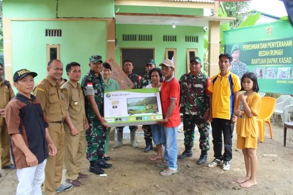 Bantuan tersebut diserahkan dalam rangka peresmian Program Bedah Rumah Tidak Layak Huni (RTLH) yang dijalankan Kodim 1202/Skw yang dikerjakan sejak awal bulan lalu.