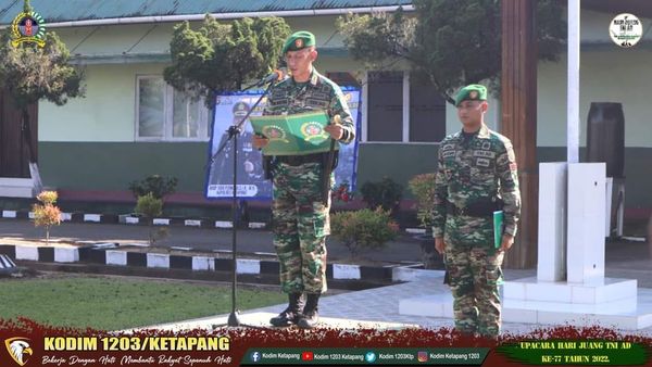 Upacara Peringatan Hari Juang TNI Angkatan Darat di pimpin langsung Komandan Kodim 1203/Ktp Letkol Inf Alim Mustofa yang dengan menghadirkan Personel gabungan, di antaranya Kodim 1203/Ktp, Subdenpom XII/1-5 Ktp dan Kompi-3 Yonmek 643/Wns.